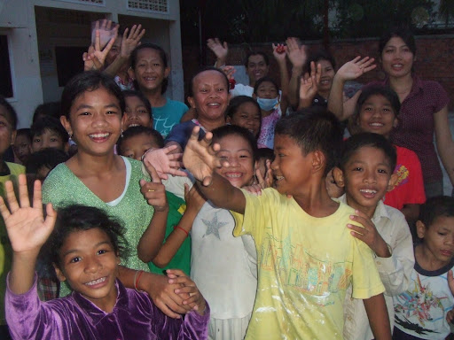 Early start for the 9 of us, catching our 6:40am plane to Phnom Penh with about 100kg of donated clothes, books and toys in our luggage. Luckily some of us travel light and Jetstar Asia was very understanding. Today was all about settling into our Hotel, taking in the sights and sounds of Phnom Penh, running errands for the housbuilding (including 63 liters of water) and we were amazed about the progress in the city since our last visit 3 years ago – new shops, more modern apartment buildings, more cars…and more traffic. Progress has come!In the afternoon, after sorting through the 7 large bags of donations, we went to our first stop - Sok Sabay, the center for the protection of mistreated children. We had visited Sok Sabay the last time three years ago and are always amazed what Marie Camal manages to do with the limited funds available to her. The center is now temporary home to 64 kids, all being prepared for a bright future. Most of the kids were in school so we played